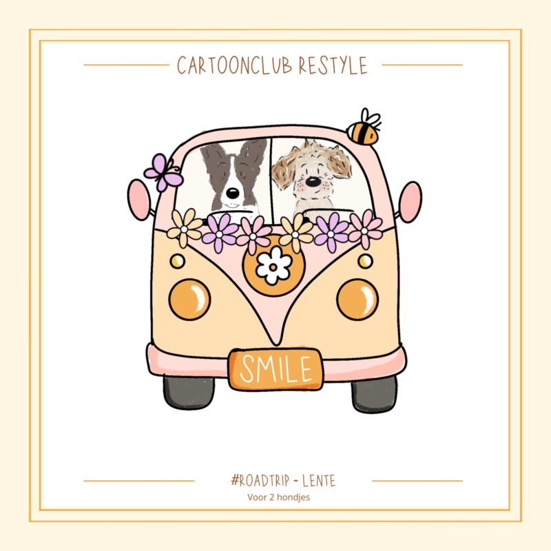 Restyle jouw cartoon doggie in deze Roadtrip – Lente setting.