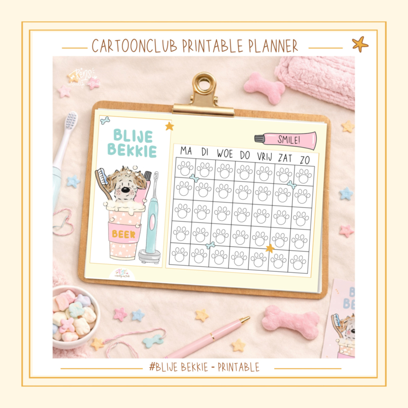 Met deze Cartoonclub planner set krijgt jouw hondje een eigen plekje in jouw dagritme — en wordt zelfs poetsen een klein feestje.
